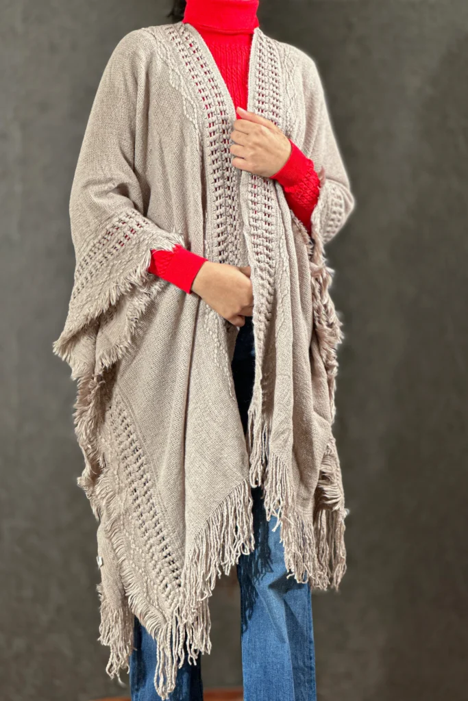 Among our signature offerings, cape shawls bring a modern twist to traditional shawls. With their structured